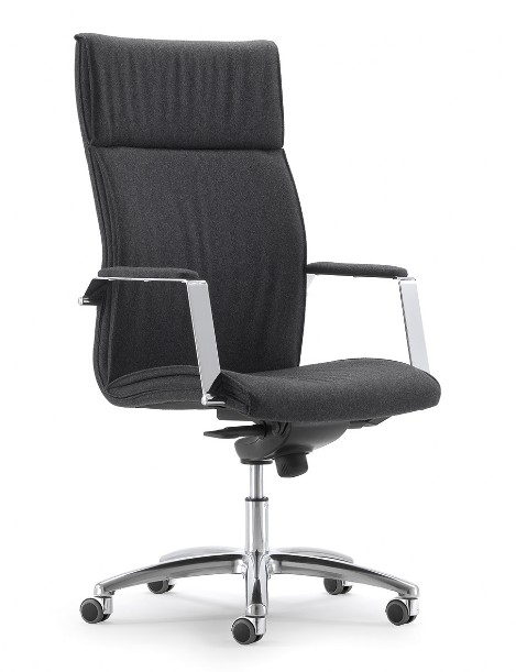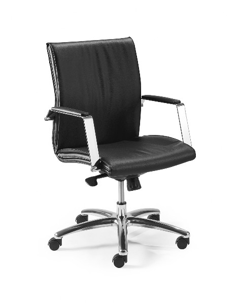 IRIS ALTA Scocca in legno schiumata braccioli in acciaio tappezzati meccanismo fulcro avanzato con 5 posizioni base in alluminio diam. 700 ruote gommate diam. 50 altezza tot. cm. 117 larghezza tot. cm. 61 ecopelle nera € 325,00 tessuto/ecop.colorata € 470,00